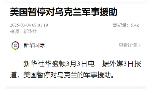 3月3日,美国国防部官员接受媒体采访时透露,特朗普已经下令暂停对乌克兰的所有军事援助。所有目前尚未运入乌克兰的美国武器运输将被暂停,包括飞机和船只正在运输的武器,以及在波兰等待运入乌克兰的武器。透露消息的官员称,特朗普要求美国防长皮特·海格塞斯执行暂停运输令。