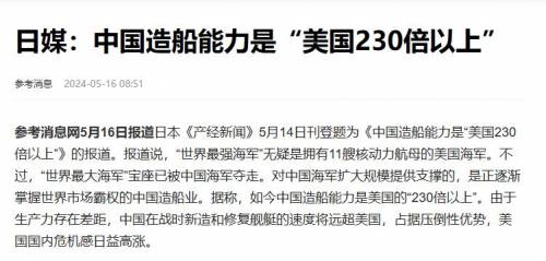 更别提中国的造船厂了,有媒体爆料,中国造舰能力是美国的230倍以上,想想这些年航母、驱逐舰下水跟下饺子似的,为的就是给战时创造强大的后勤条件。