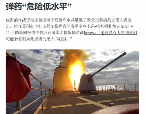 哈德逊研究所的一名退役海军中校布莱恩·克拉克表示,美国海军在红海战斗的频率已经超过了二次世界大战以来的任何一年,虽然海军舰艇最终都毫发无损,然而美国航母编队却消耗了至少价值10亿美元的弹药,这使得美国需要在接下来的几年内想办法提升常规武器库存,尤其是美军的武器制造供应链存在严重不足,将影响舰艇的重新装填。克拉克悲观地表示,如果这时候中国发起了对台岛的战斗,美国的弹药数天内就会耗光。