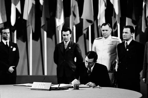 1945年6月26日,安德烈·葛罗米柯在旧金山代表苏联签署了《联合国宪章》(图源:联合国)