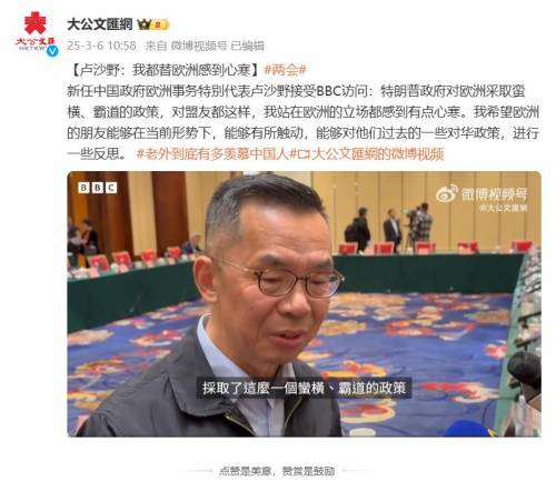 大公文汇网的标题是《卢沙野:我都替欧洲感到心寒》。