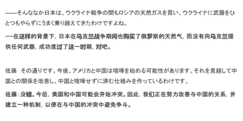 你比方说他们在访谈中因为探讨俄乌冲突有关话题而引申到台海局势时,这俩日本人的脑回路是这么长的: