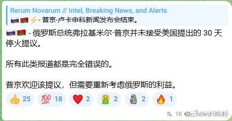 ???? 普京并未接受美国提出的 30 天停火提议。所有此类报道都是完全错误的。普京欢迎该提议,但提出需要重新考虑俄罗斯的利益。