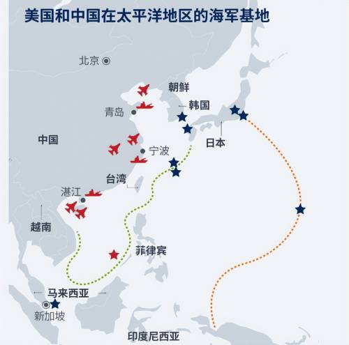美国站全球分布约300个军事基地,在亚洲的海军基地就有关岛、横须贺、迪戈加西亚等大型军事要塞。