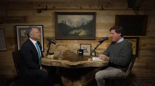 美国中东问题特使威特科夫(左)与塔克·卡尔森对话。 视频截图