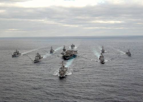 美国航空母舰出动时,需要伴随着大量军舰,这套组合被称为“航母打击群”(Carrier Strike Group,CSG),CSG常规配置核心为1艘航空母舰、1艘巡洋舰、2~3艘驱逐舰,1~2艘潜艇和1艘补给舰,总兵力8000~10000余人。双航母就是两套航母打击群,舰载机总数可达150架以上,拥有10~12艘水面舰艇和2~4艘潜艇。双航母状态下,高强度战争中每天可出动约300~400架次战机,打击范围约1600公里。如果有空中加油机的支持,打击范围超过可能2000公里,可以执行的任务包括争夺制空权、对地攻击、海上封锁等等。航母打击群兼顾进攻和防御能力,配备“宙斯盾”系统的驱逐舰多艘配合,可以组成多层防空网,编队还拥有很强的反潜能力、电子战。核动力航母续航无限,只需要补给舰补充其他物资,部署几个月不成问题。