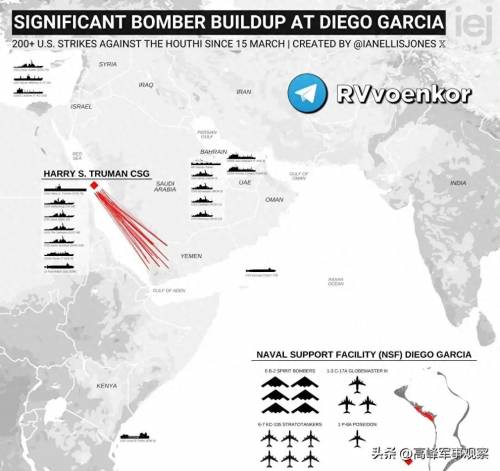 山雨欲来风满楼,美国和以色列针对德黑兰的军事准备正在加快推进中。目前,美军在印度洋迪戈加西亚军事基地的战略部署,显著突出了战争威慑意味。4月2日,国外商用卫星拍摄到了迪戈加西亚岛空军基地露天停放的6架B-2战略轰炸机,B-2罕见大规模部署到印度洋基地,再加上8架B-52轰炸机,美军当前可用的核常兼备空中打击力量,足以对中东地区的任何国家实施战略性轰炸。