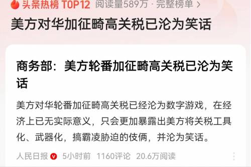 中国宣布,对美所有关税增加至125%,特朗普求锤得锤!这个公告中,考虑到特朗普的智商,有一段话非常有大智慧:即便美方继续加征再高关税,已经没有经济意义,而且还将沦为世界经济史上的笑话。在目前关税水平下,美国输华商品已无市场接受可能性。如果美方继续关税数字游戏,中方将不予理会。但是,倘若美方执意继续实质性侵害中方利益,中方将坚决反制,奉陪到底。也就是说,中国最高就加到125%,后面不赔这个疯子玩数据游戏了。