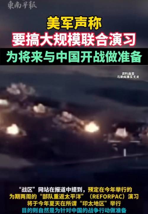 美媒《战区》网站在报道中提到,美国海军部长办公室参谋部主任、海军中将博伊尔表示,美国国防部正在组织美军各军种及海岸警卫队在太平洋举行大规模联合演习,预计为期两周的“部队重返太平洋”今年夏天将在“印太地区”举行,内容是在太平洋与中国爆发大规模战争的情况下如何获胜,赤裸裸地为针对中国战争做准备。