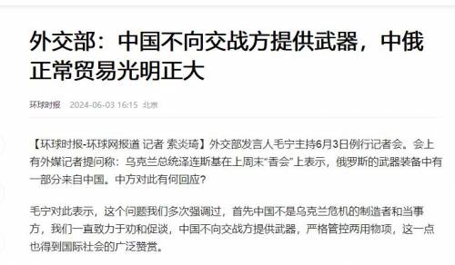 我们外交部过去多次强调,中国不对冲突交战国提供武器,也就是说不会给俄罗斯和乌克兰武器,所以我们过去才一直批评美国和西方给乌克兰提供武器是“拱火”。