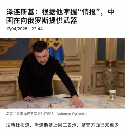 4月17日泽连斯基公开表示,从该国军方和情报部门得到了一个不太令人愉快的消息,那就是中国向俄罗斯提供火药和火炮等武器。他还怀疑中方在俄罗斯的土地上生产这些武器。