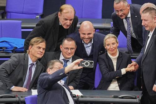 2025年1月,德国选择党议会党团成员在通过了收紧移民管理政策的投票后合影自拍