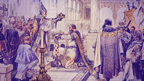 公元962年,教宗若望十二世为奥托一世加冕,称颂他为“神圣罗马帝国的皇帝” 图自:德国博物馆
