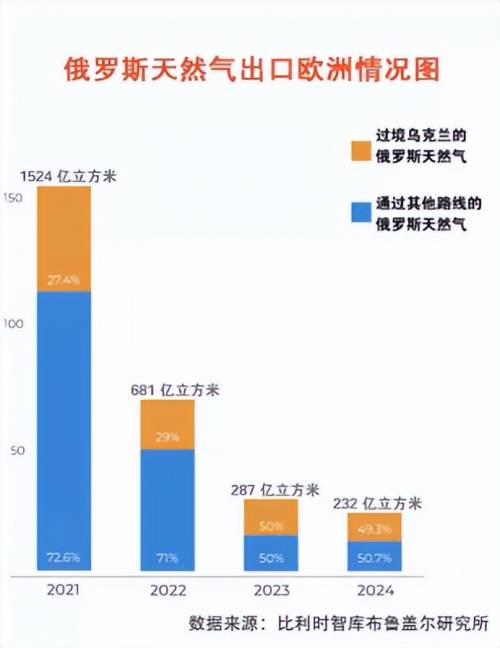 【去年俄向欧洲出口232亿立方米天然气,一半过境是乌克兰的】