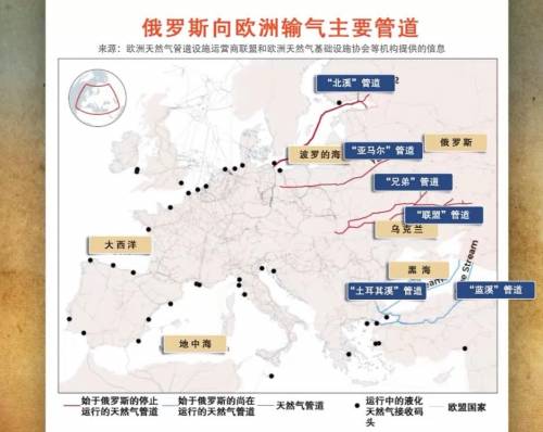 【战前,俄罗斯和欧洲之间有6条主要天然气管道】