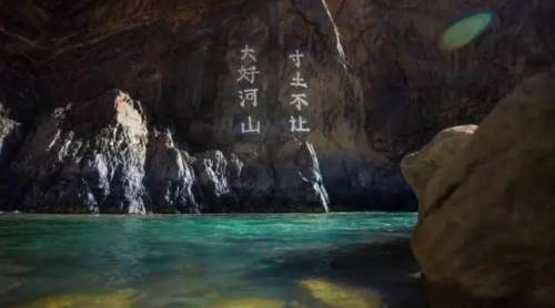 ▲东章瀑布附近的标语