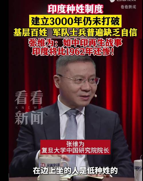 在高志凯教授之后,中国著名学者张维为在谈到印巴冲突时谈到的一个观点让印度人再次破防:如中印再生战事,印度将比1962年还惨!