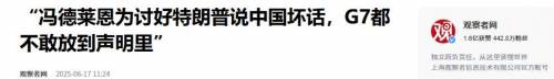 冯德莱恩本想在G7峰会上,讨好特朗普,塑造一个“团结抗中”的姿态,但没想到只留下一个“谁都离不开中国”的现实。