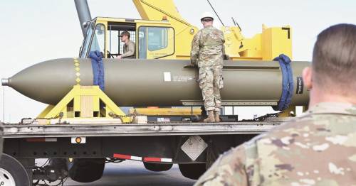 此次起飞的B2轰炸机,部署了 B-2 轰炸机独有的巨型钻地弹(MOp),这种武器重达 13.6 吨,配备 2.3 吨高爆炸药战斗部,设计指标可穿透 60 米厚钢筋混凝土或 8 米厚钢板,专门用于摧毁深埋地下的高价值目标。