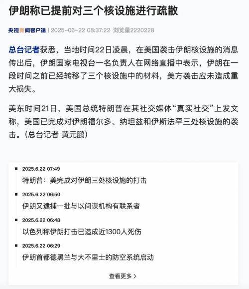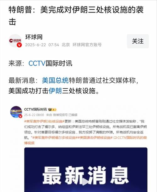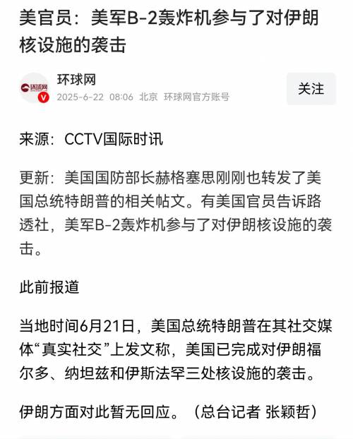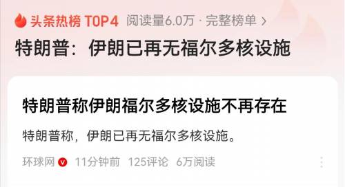 一早被大雨的声音叫醒,就看到特朗普网宣袭击伊朗核设施。特朗普的嘴一贯不靠谱,希望放了一个空炮!但现在看,特朗普说伊朗再无核设施,且已经对三处核设施进行了打击。现在担心的是,一旦核泄漏,后果不堪设想。而无论是否核泄漏,特朗普都走向了作死的道路。