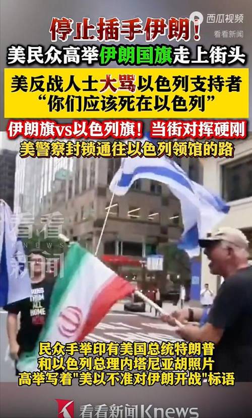 当地时间6月18日,美高级官员称,正为未来几天对伊袭击的可能性做准备。当天,纽约民众爆发游行,抗议者高举“美以不准对伊朗开战”的标语,高喊“美国不要犯下战争罪”,要求美国停止插手伊朗,并与以色列支持者发生冲突。
