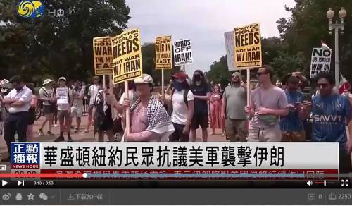 当地时间22日,美国华盛顿和纽约民众就美国袭击伊朗核设施举行抗议活动。