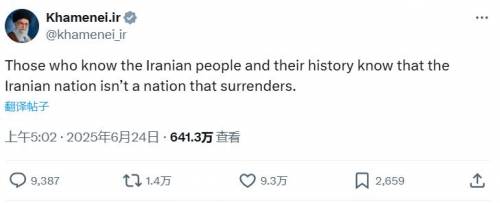 与此同时,伊朗最高领袖哈梅内伊在社交平台上发声表示: