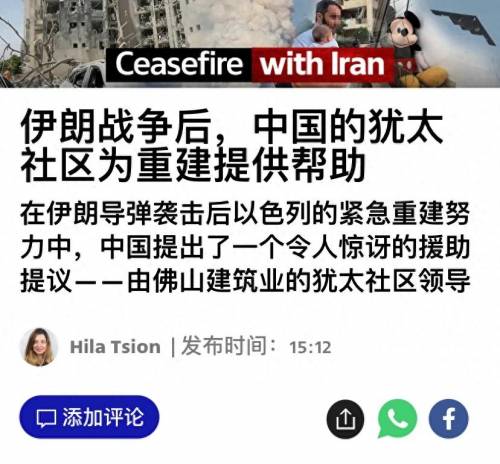6月25日,以色列媒体注意到,在伊朗导弹袭击后,中国企业和当地的犹太人社区,向以色列官方提出了一个令人惊讶的提议:广东佛山的一些开发商愿意参与。
