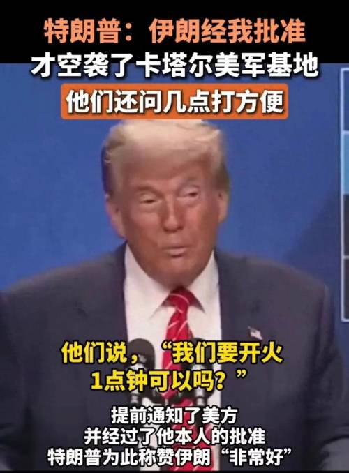 特朗普称,伊朗在向卡塔尔美军基地发动导弹袭击前,提前通知了美方,并经过他本人批准。