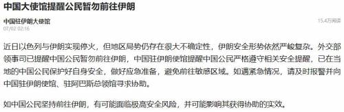 但中国大使馆已经提醒公民暂勿前往伊朗,美国那边也是提醒在伊的美国人尽快撤离。
