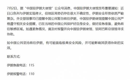 当其他国家大使馆还在发布常规旅行提醒时,中国驻伊朗大使馆2025年7月2日的特别公告却引发全球情报机构高度关注:“请中国公民近期暂勿前往伊朗,已在伊朗人员应加强安全防范。”