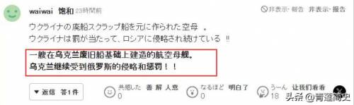 一个日本网民评论:“这是乌克兰的二手航母改造是而已,乌克兰把航母卖给中国,然后就遭到报应了,现在被俄罗斯胖揍就是证明。”