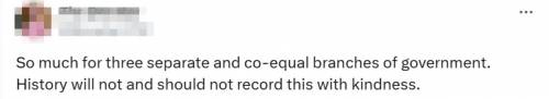 社交媒体上四处可见“道心破碎”的抨击言论,“三权分立、相互制衡的政府架构,不过尔尔。历史不会、也不应宽容地记录下这一幕。”