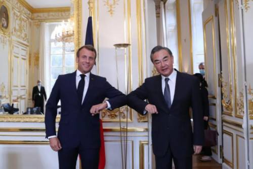 法国总统马克龙、中国外长王毅