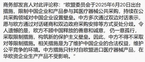 然后就是昨天商务部发布消息,对来自欧盟的进口医疗器械进行“反制”,作为欧盟对限制中国企业和产品参与采购的一次“反制”。