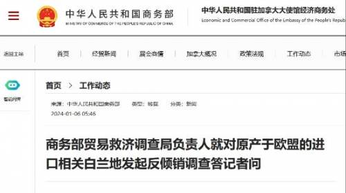 最近中欧之间发生了很多事情。首先是中国商务部对欧盟的白兰地产品进行了“反倾销调查”裁定。因为中国和欧洲之间的电动汽车关税的事儿还没有结果。所以中国开始“敲打欧盟”。