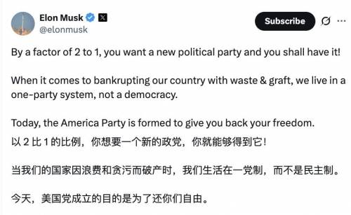 但是美国的目前的政治制度欢迎马斯克,欢迎“美国党”么?