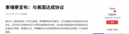 7月4日,柬埔寨政府宣布与美国谈判达成共识,将在数日内联合发布关税协议声明。
