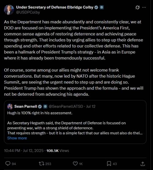 对此,科尔比拒绝对媒体置评,但在社交平台X(原推特)上发文称,美国的一些盟友“可能不欢迎坦率的对话”。