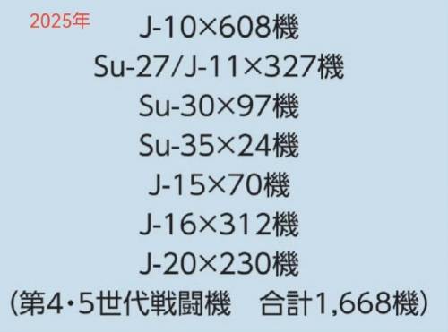 【防卫省统计中国战斗机数据】