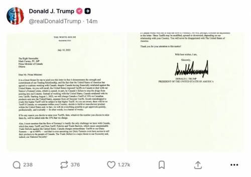 特朗普还同步在社交媒体上“公开威胁”,要是加拿大还不服并且继续对美提升关税,他也会在35%的基础上继续加。