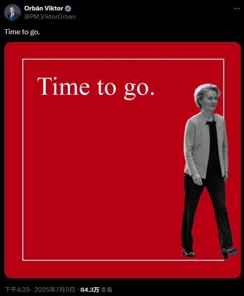 “冯德莱恩该走了。”9日,匈牙利总理欧尔班在社交媒体X平台发文,并配了张冯德莱恩走出红色框架的图片。欧尔班坚持认为,冯德莱恩应该被免职。