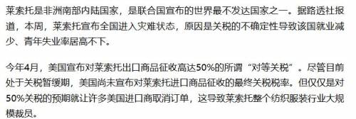 如果说这些都是出于“美国优先”政策,那特朗普对一个非洲小国也同样实施了50%的高额关税就很难理解了。