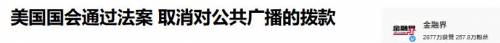 而法案中,另外11 亿美元指的是公共广播的拨款,法案宣布从10月1日起,美国公共广播公司将不再获得联邦任何拨款。