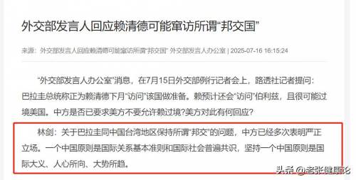 在2025年7月14,一个国家的总统佩尼亚亲口宣布,将在30天内以“最高规格”接待中国台湾地区领导人赖清德。
