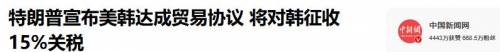 据报道7月30日,特朗普又通过社交平台宣布:美韩达成一项“全面且完整”的贸易协议。