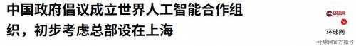 据报道7月26日,中国政府倡议成立世界人工智能合作组织,并且考虑这个组织的总部设在上海,计划面向全球开放。