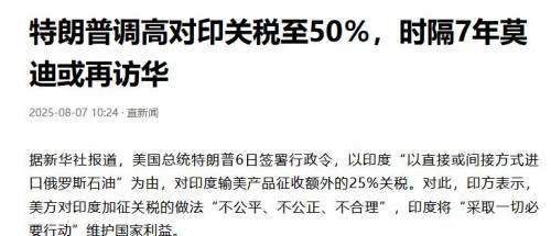 特朗普前脚刚宣布对印度的关税上涨,也就是在同一天,印度表示莫迪将于8月31日访华。
