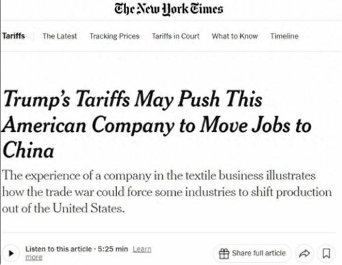 Cocona Labs 这家美国公司就很典型:原本把三分之二的原材料送到中国加工,现在为了规避关税,干脆把部分生产线搬到了中国。