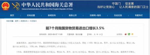 海关总署的数据显示,2025 年前 7 个月,中国进出口总值 25.7 万亿元,同比增长 3.5%,增速还在加快。